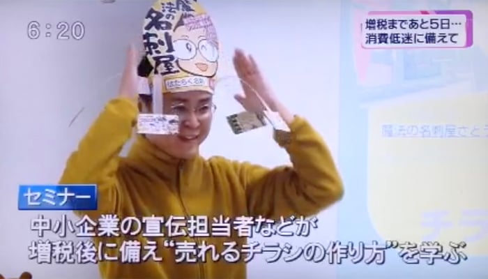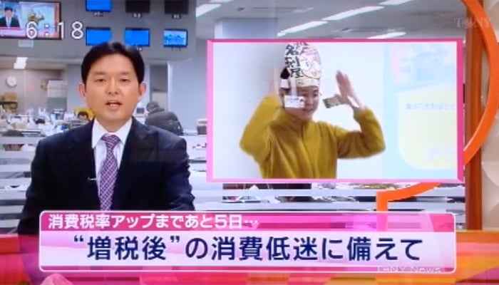 消費税増税を5日後に控え、その対策となる「効果的なチラシ作りのセミナー(主催・講演ともに私)」がTeNYさん・BSNさんの夕方ニュースの取材を受け放映されました。